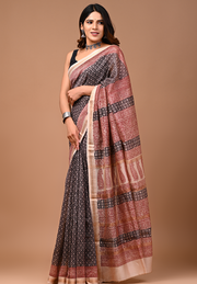 PAHELI JAIPUR Hand Block Mulmul Cotton Saree For Women With Blouse Piece (Black)