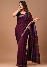 PAHELI JAIPUR Maheshwari Silk Saree for Women with Blouse Piece Hand Block Print