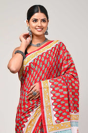 Women In Red - Mulmul Cotton Saree For Women With Blouse Piece