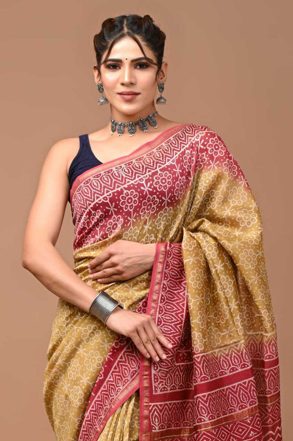 PAHELI JAIPUR Chanderi Silk Saree for Women with Blouse Piece Hand Block Print